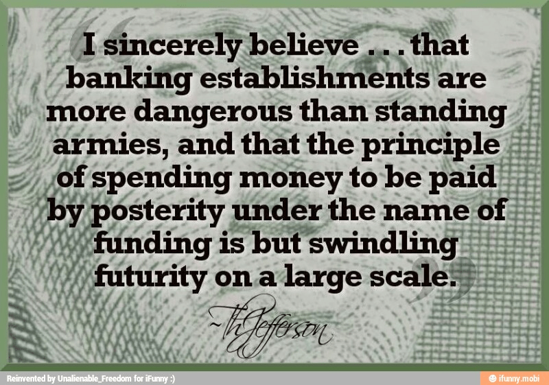 “The principle of spending money to be paid by posterity, under the name of funding, is but swindling futurity on a large scale.” – Thomas Jefferson (1816)