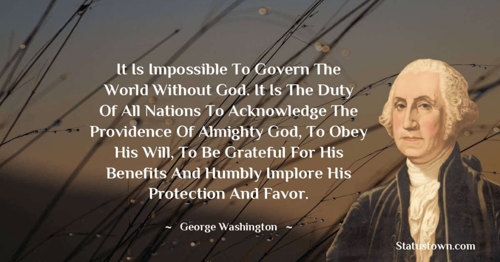 “It is the duty of all Nations to acknowledge the providence of Almighty God, to obey his will, to be grateful for his benefits, and humbly to implore his protection and favors.” – George Washington