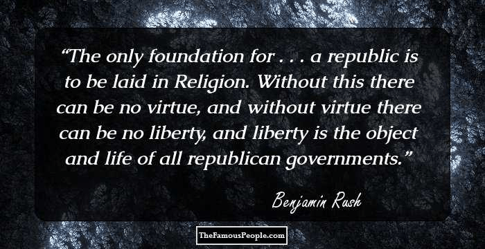 “[T]he only foundation for a useful education in a republic is to be laid in religion. Without this there can be no virtue, and without virtue there can be no liberty, and liberty is the object and life of all republican governments.” —Benjamin Rush