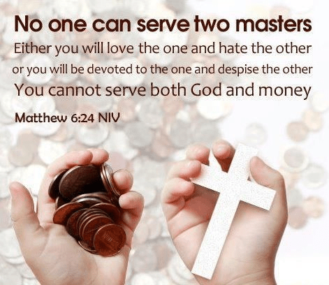 “No one can serve two masters. Either you will hate the one and love the other, or you will be devoted to the one and despise the other. You cannot serve both God and money.’ – Matthew 6:24 (NIV)