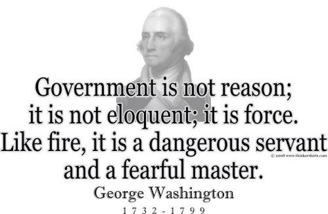 “Government is not reason; it is not eloquent; it is force. Like fire, it is a dangerous servant and a fearful master. Experience has taught us that it is much easier to prevent an enemy from posting themselves than it is to dislodge them after they have got possession, and when the freedom of speech is taken away then dumb and silent we may be led, like sheep to the slaughter.” – George Washington
