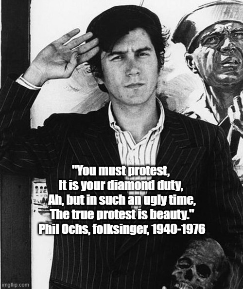 “You must protest / It is your diamond duty / Ah but in such an ugly time / The true protest is beauty.”-Phil Ochs, folksinger (19 Dec 1940-1976)