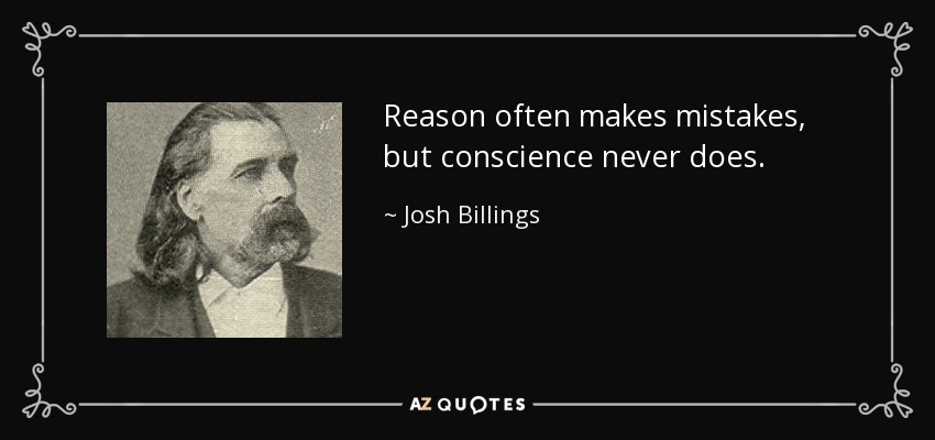 “Reason often makes mistakes, but conscience never does”. -Josh Billings, columnist and humorist (21 Apr 1818-1885)