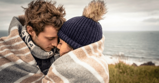 The waves resound as they crash on the shore While each kiss between begs for a little more A look tells us we fit smoothly into our places And the love we feel is written on our faces