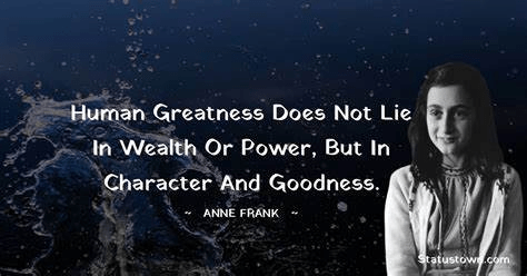 “Human greatness does not lie in wealth or power, but in character and goodness.” – Anne Frank