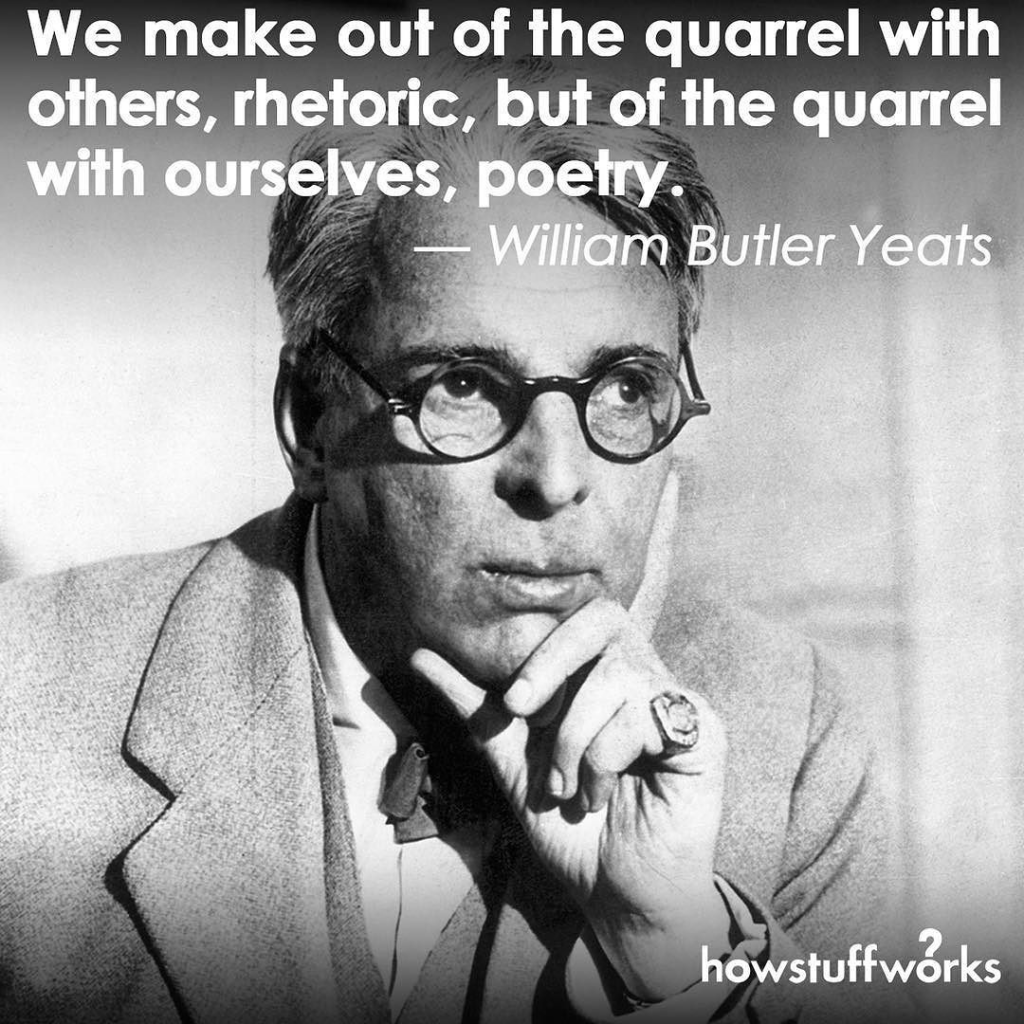 “Out of the quarrel with others we make rhetoric; out of the quarrel with ourselves we make poetry.” -William Butler Yeats, writer, Nobel laureate (13 Jun 1865-1939)