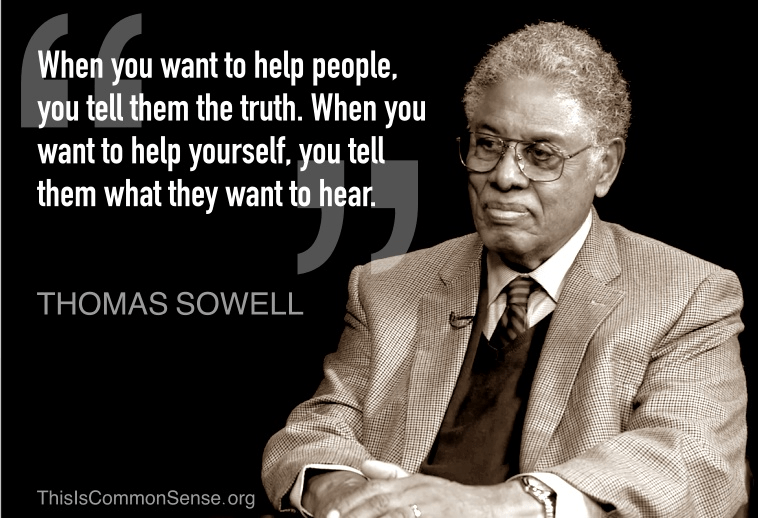 “When you want to help people, you tell them the truth. When you want to help yourself, you tell them what they want to hear.” – Thomas Sowell