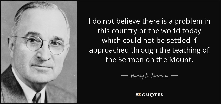 “I do not believe there is a problem in this country or the world today which could not be settled if approached through the teaching of the Sermon on the Mount.” – Harry S. Truman