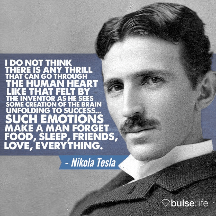 “I do not think there is any thrill that can go through the human heart like that felt by the inventor as he sees some creation of the brain unfolding to success… Such emotions make a man forget food, sleep, friends, love, everything.” – Nikola Tesla, electrical engineer and inventor (10 Jul 1856-1943)