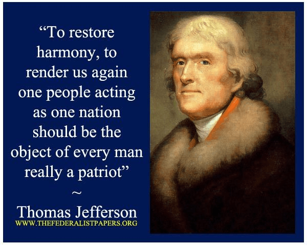 “To render us again one people acting as one nation should be the object of every man really a patriot.” – Thomas Jefferson (1801)