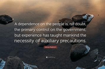 “A dependence on the people is, no doubt, the primary control on the government; but experience has taught mankind the necessity of auxiliary precautions.” – James Madison (1788)