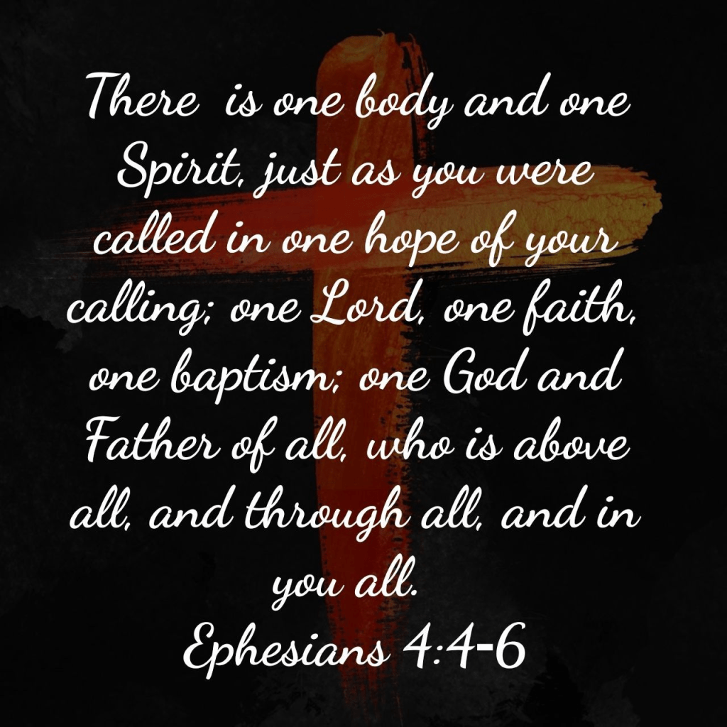 “There is one body and one Spirit—just as you were called to the one hope that belongs to your call— one Lord, one faith, one baptism, one God and Father of all, who is over all and through all and in all.” – Ephesians 4:4-6