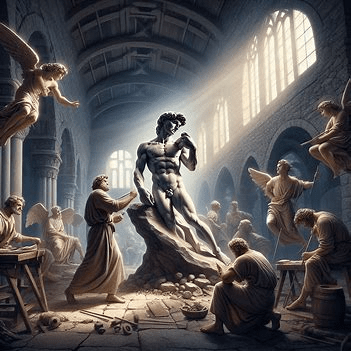 Little by little life's unneeded parts are removed As the Sculptor sees the truth and we are duly moved We transform into the new humanity that we're to become Walking in staggered paces as children of His kingdom