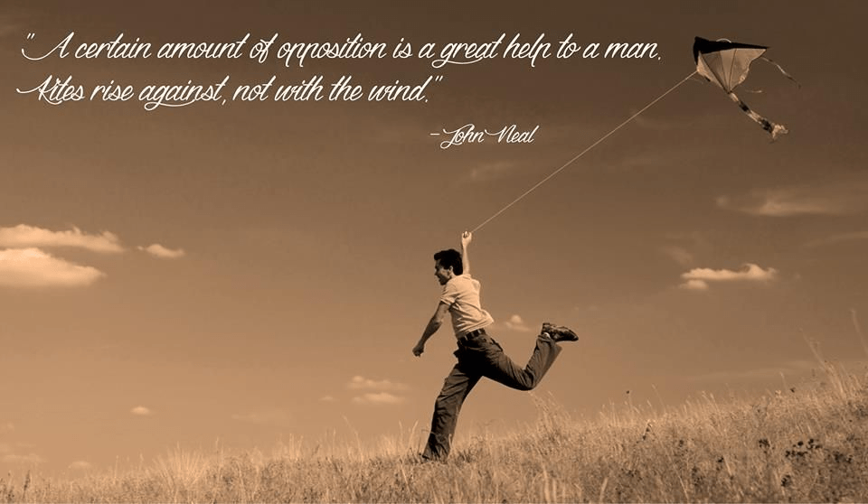 “A certain amount of opposition is a great help to a man. Kites rise against, not with, the wind.” – John Neal, author and critic (25 Aug 1793-1876)