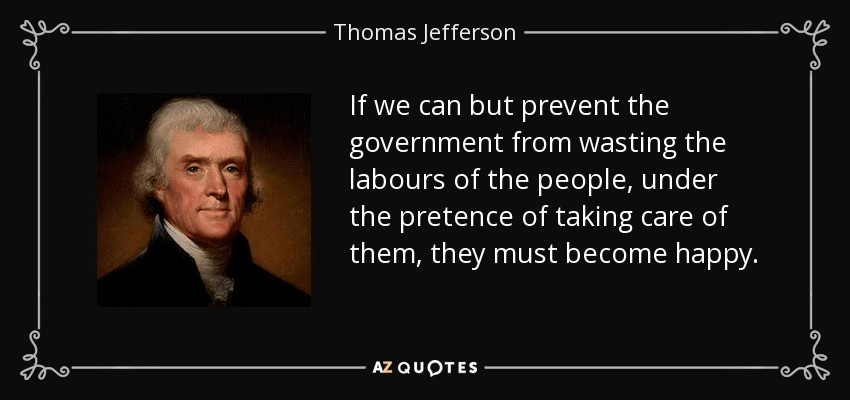 “If we can prevent the government from wasting the labors of the people, under the pretence of taking care of them, they must become happy.” – Thomas Jefferson (1802)