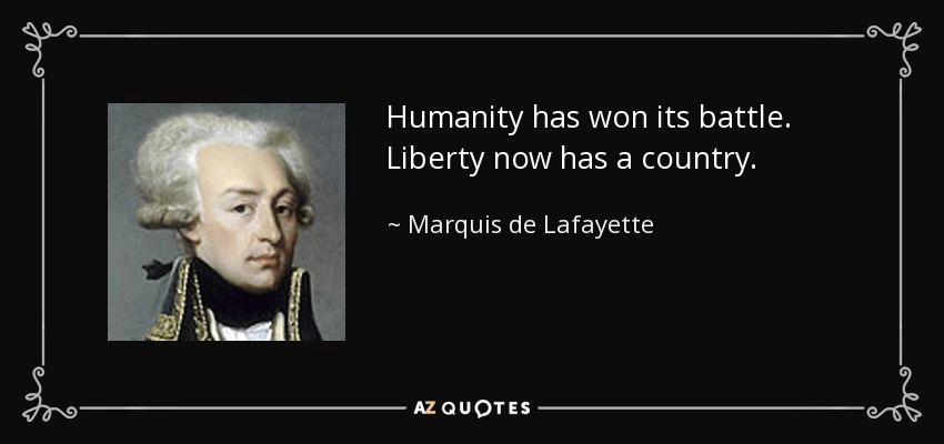 “Humanity has won its battle. Liberty now has a country.”– Marquis de Lafayette