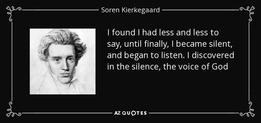 “I found I had less and less to say, until finally, I became silent, and began to listen. I discovered in the silence, the voice of God” – Soren Kierkegaard