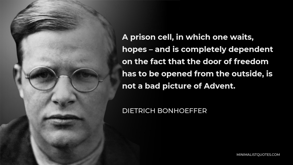 “A prison cell, in which one waits, hopes – and is completely dependent on the fact that the door of freedom has to be opened from the outside, is not a bad picture of Advent” – Dietrich Bonhoeffer, God Is In the Manger