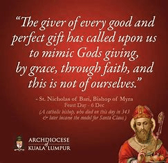 “The giver of every good and perfect gift has called upon us to mimic Gods giving, by grace, through faith, and this is not of ourselves.” – St. Nicholas of Myra