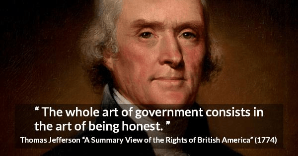 “The great principles of right and wrong are legible to every reader; to pursue them requires not the aid of many counselors. The whole art of government consists in the art of being honest.” – Thomas Jefferson (1775)
