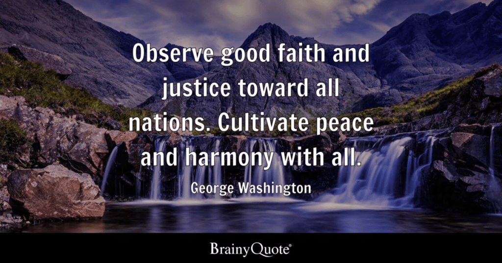 “Observe good faith and justice toward all nations. Cultivate peace and harmony with all.” – George Washington, Farewell Address (1796)