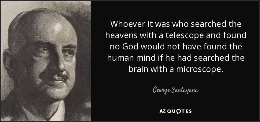 “Whoever it was who searched the heavens with a telescope and found no God would not have found the human mind if he had searched the brain with a microscope.” – George Santayana