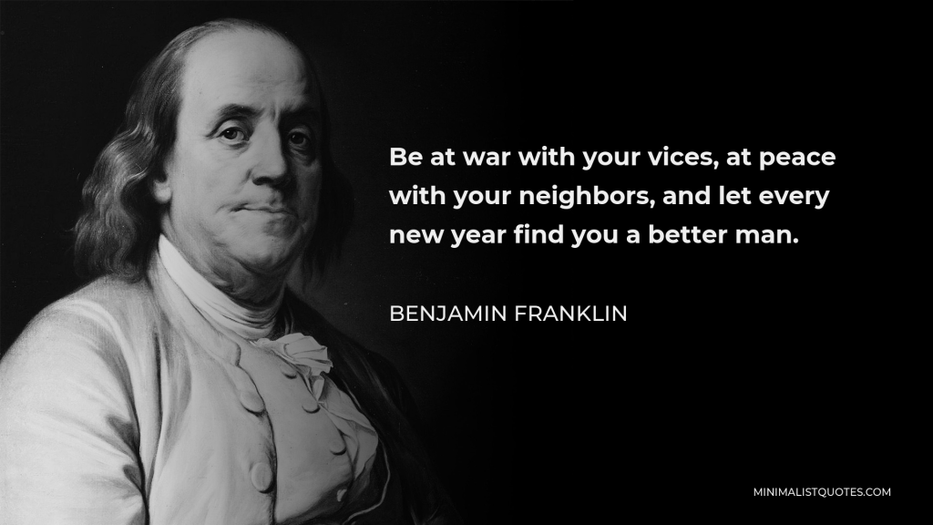 “Be at War with your Vices, at Peace with your Neighbors, and let every New-Year find you a better Man.” – Benjamin Franklin