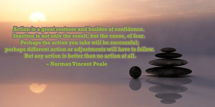 “Action is a great restorer and builder of confidence. Inaction is not only the result, but the cause, of fear. Perhaps the action you take will be successful; perhaps different action or adjustments will have to follow. But any action is better than no action at all.” – Norman Vincent Peale