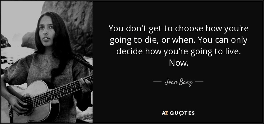 “You don’t get to choose how you’re going to die, or when. You can only decide how you’re going to live. Now.” – Joan Baez, American singer, songwriter, musician, and activist (b. January 9, 1941)