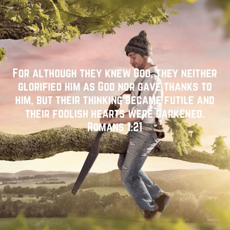 “For although they knew God, they neither glorified him as God nor gave thanks to him, but their thinking became futile and their foolish hearts were darkened” – Romans 1: 21