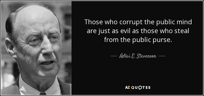 “Those who corrupt the public mind are just as evil as those who steal from the public purse.”- Adlai E. Stevenson