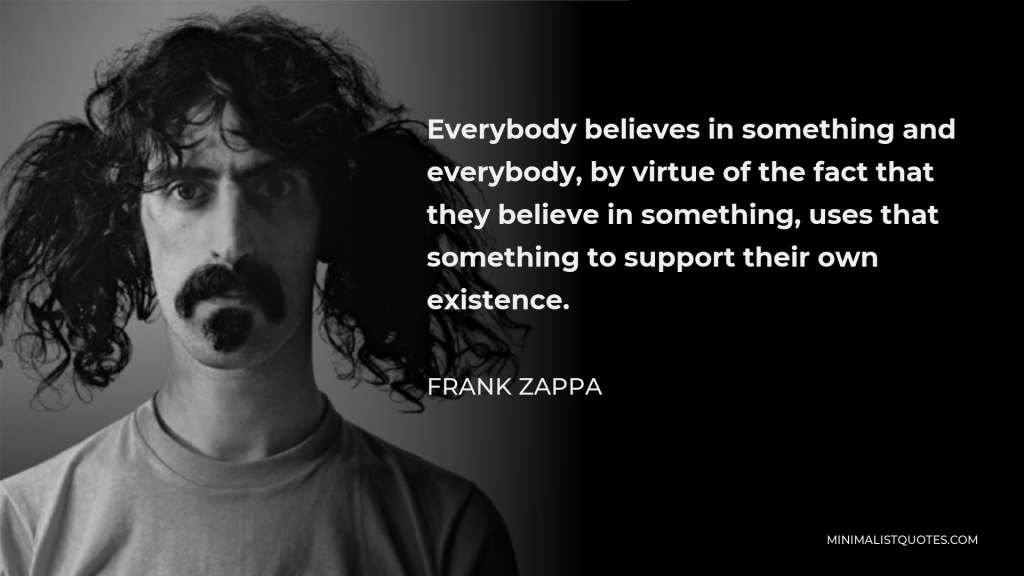 “Everybody believes in something and everybody, by virtue of the fact that they believe in something, uses that something to support their own existence.” – Frank Zappa