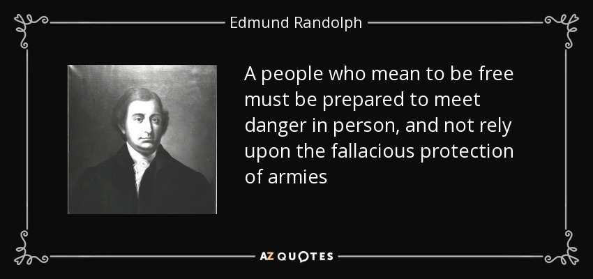 “A people who mean to be free must be prepared to meet danger in person, and not rely upon the fallacious protection of armies.” – Edmund Randolph