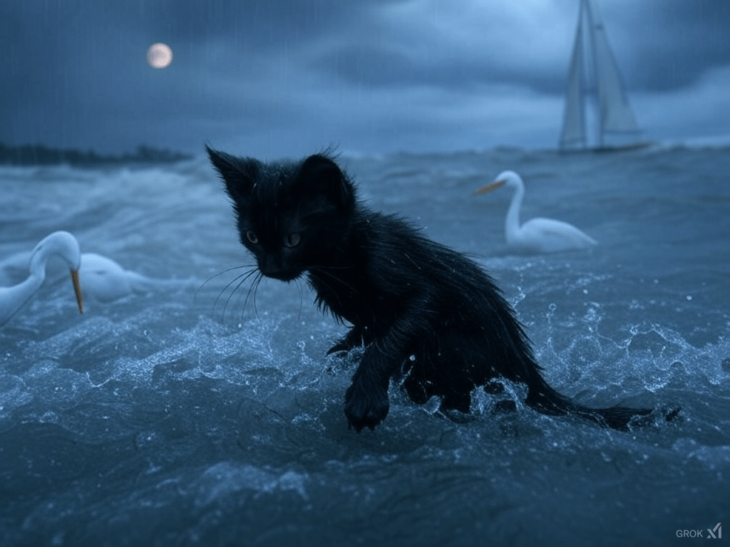 Sunset captures fear's reflection As the kitten meanders in the right direction Unhungry and not seeking some timid mouse But rather the warmth of the familiar house