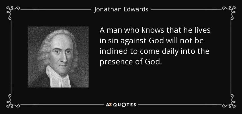 “A man who knows that he lives in sin against God will not be inclined to come daily into the presence of God.” – Jonathan Edwards