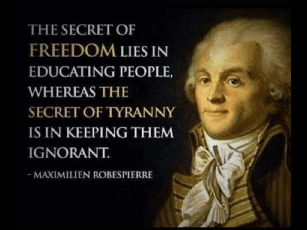 “The secret of freedom lies in educating people, whereas the secret of tyranny is in keeping them ignorant.” – Maximilien Robespierre