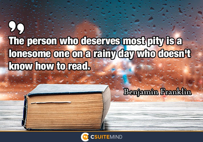 “The person who deserves most pity is a lonesome one on a rainy day who doesn’t know how to read.” – Benjamin Franklin