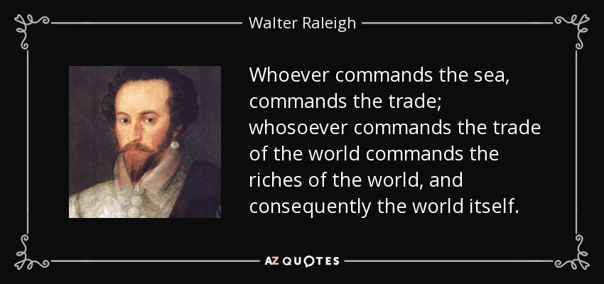 “Whoever commands the sea, commands the trade; whosoever commands the trade of the world commands the riches of the world, and consequently the world itself.” – Walter Raleigh