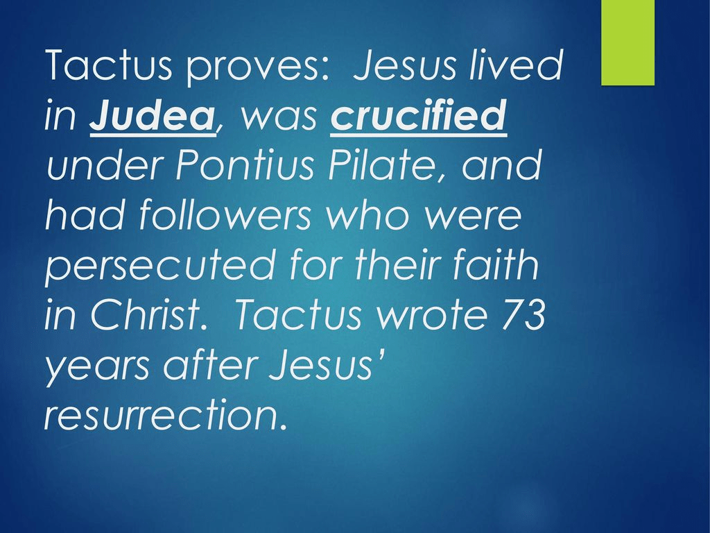 ” Jesus lived in Judea, was crucified under Pontius Pilate, and had followers who were persecuted for their faith in Christ.” – Tacitus (56-120AD)