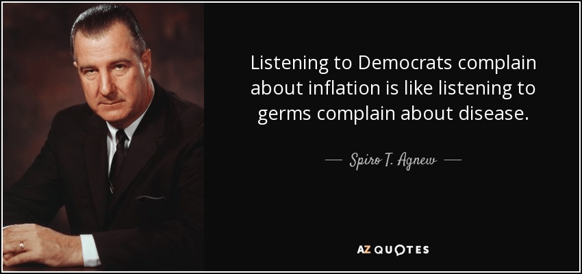 “Listening to Democrats complain about inflation is like listening to germs complain about disease.” – Spiro T. Agnew