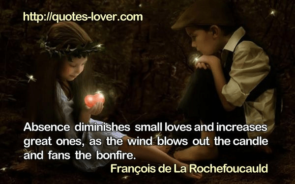 “Absence diminishes small loves and increases great ones, as the wind blows out the candle and fans the bonfire.”– Francois Duc de la Rochefoucauld, Maxims