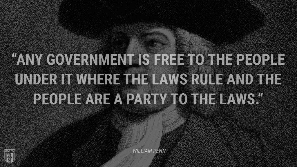 “Any government is free to the people under it where the laws rule and the people are a party to the laws.” – William Penn