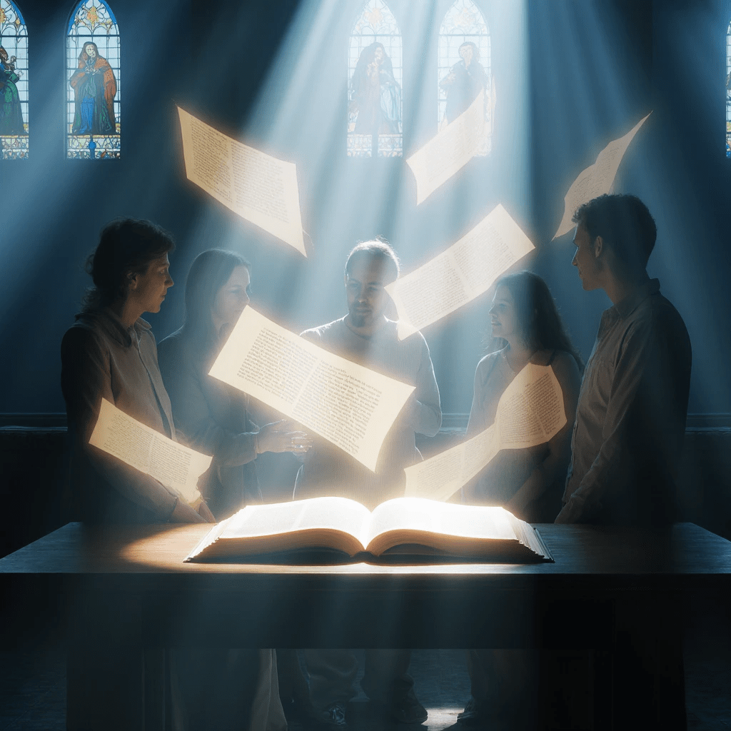 In our family's living sanctuary, The Bible serves as a special library. It teaches us how to live and to love, Instructed in conversation with Heaven above.