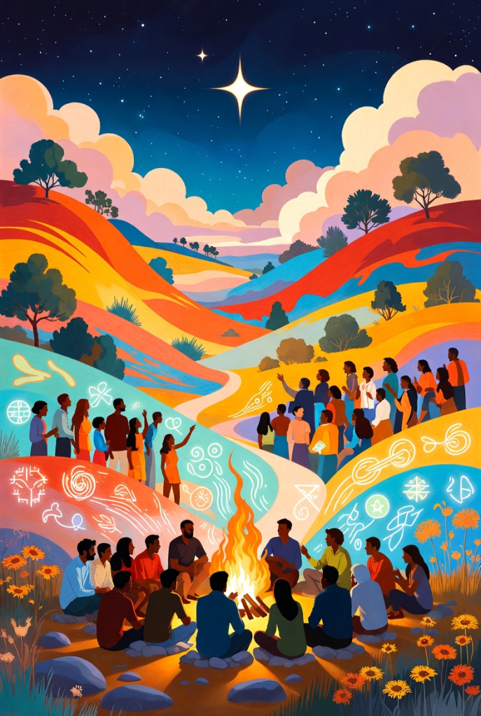 I sit here before the boughs of my Christmas tree. Bows, ribbons, and bulbs contribute to the beauty. They play different roles without drifting far. All of them, as if aware, they're under one star.