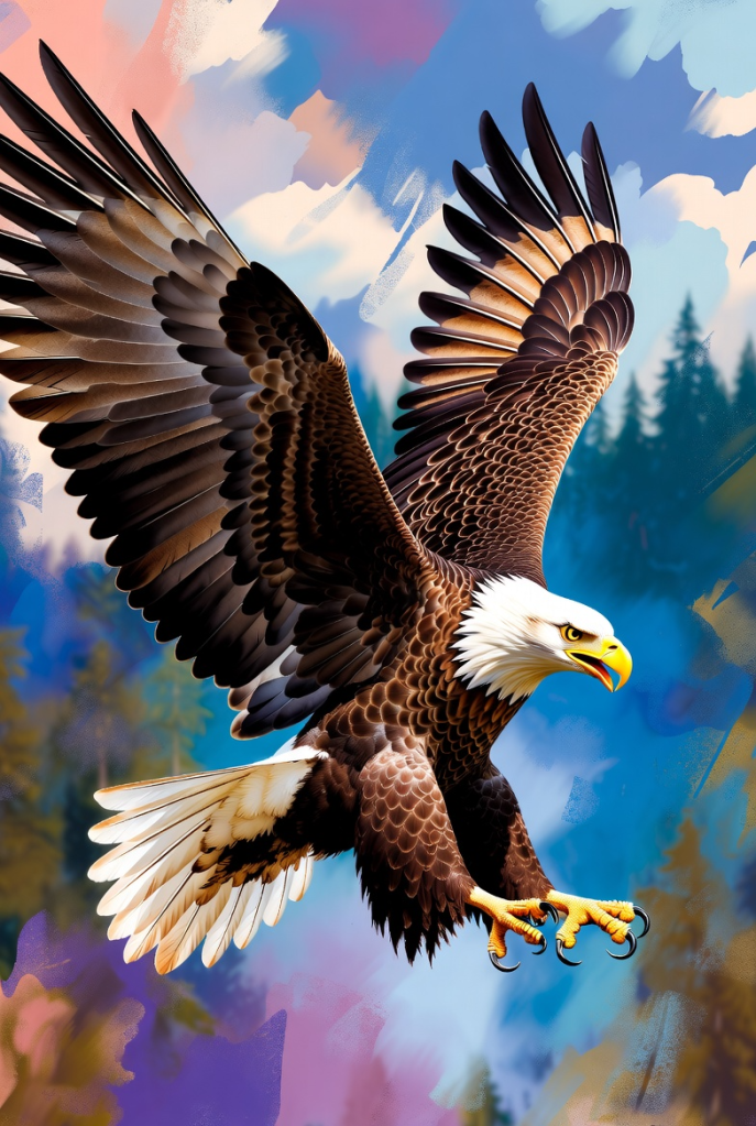 Soaring above in the wide and windy open skies, Our bald eagle remains the symbol of us as it flies. With a wingspan of up to nearly seven feet, Long may the bald eagle symbolize freedom without defeat.