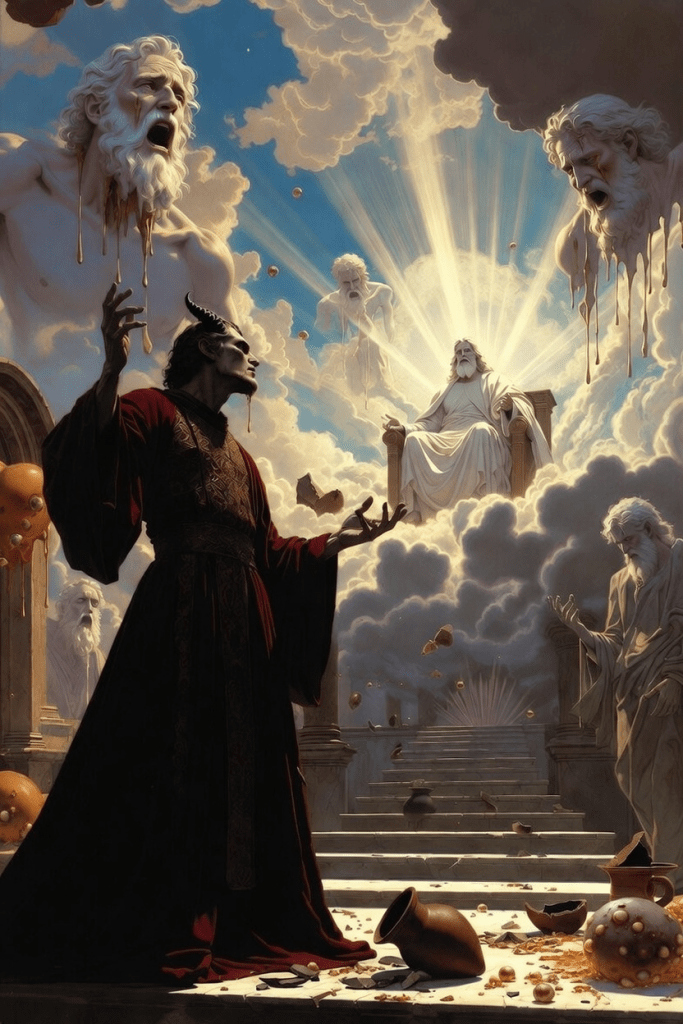 Satan's contention is that doing good for good Is an easy task for Job to be undertaken and understood. Satan challenged God to allow Job to be put to a test. In enduring pain, could Job truly prove best?