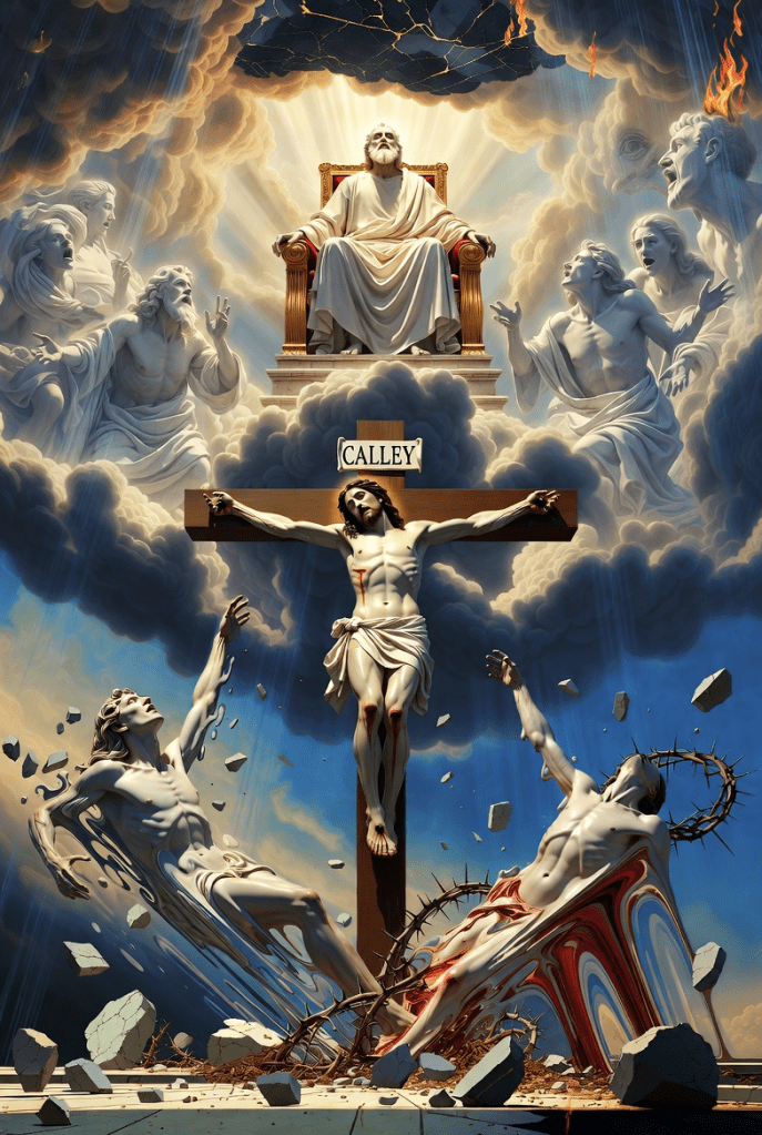 God comes to feel the real in our humanity. Chaos, flooding, and storms challenge our integrity. He speaks honestly to us to calm us sincerely As He hung on the cross to save us despite our vanity.
