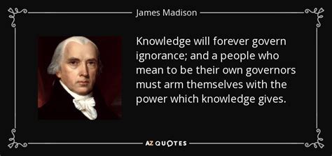 “Knowledge will forever govern ignorance; and a people who mean to be their own governors must arm themselves with the power which knowledge gives.” – James Madison