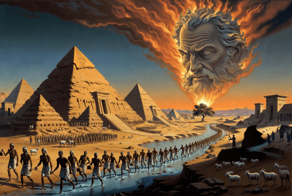 Moses told Pharaoh to let His son free for him to go, And in doing this, God as our Father began to show. Sheep and goats shepherded by Moses lived unbroken, Until God, as a burning bush, had majestically spoken.