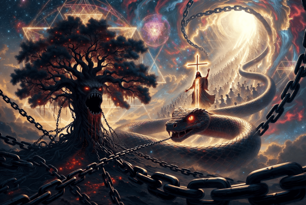 Sin and death were linked with a single bite. This was the test that mankind didn't get right. It came down to a relationship of trusted love. The serpent caused a breach with Heaven above.